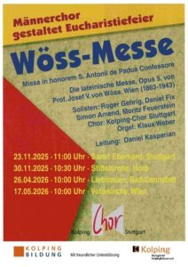 Im Rahmen einer feierlichen Eucharistiefeier in der Kirche Liebfrauen gestaltet der Kolping-Chor Stuttgart die musikalische Ausgestaltung mit der eindrucksvollen Wöss-Messe.